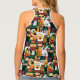 Women's All-Over Print Racerback Tank Top, White Piping, S