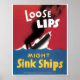 "Loose Lips Might Sink Ships" vintage World War ll patriotic poster.