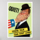 This vintage WW2 poster features the hand of Uncle Sam, covering the mouth of a man in a hat. It reads, "Quiet! Loose Talk Can Cost Lives".