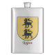 Hispanic surname Lopez heraldic shield drinking flask. Text below the shield is in a classical style font to match the colors on the shield.