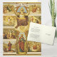 Featuring a text of “The Lord's Prayer” with the Trinity in central column (God the Father, dove of the Holy Spirit, Jesus) and Biblical and symbolic scenes in left and right columns. Artist, Fridolin Leiber (1853–1912) Inside is the OUR FATHER in ENGLISH and in LATIN.