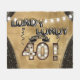 Funny lordy lordy look who's 40 with black and gold foil balloons, gold confetti, black ribbons and marquee number lights.