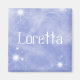 Name Loretta on a cool blue and white starry personalized magnet, designed by 369MyName.