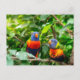 Colorful image of a pair of rainbow lorikeet parrots sitting on a branch