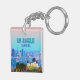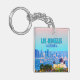 Display the vibrant white architecture and maroon domes of Griffith Observatory in front of the backdrop of pastel pink and blue skyscrapers overlooking Los Angeles, California, USA on a keychain as a memento of one of America's greatest sites!