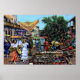 Vintage image of Olvera Street in Los Angeles. Showns are the venders and two singers serenading the crowd.