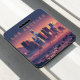 Los Angeles stadium seat cushion featuring the Los Angeles, California skyline and landscape. Blue and orange colors. Custom text. Change the text on the seat cushion or keep as is. Use the template to create your own Los Angeles stadium seat cushion.