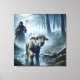Lost Lamb With Shepherd In Rainy Forest Canvas Print