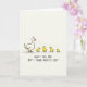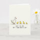 This card shows a white mother bird with an orange beak and webbed feet stepping forward on the left, while four small yellow chicks trail behind her in a neat line, their tiny bodies shrinking slightly as they move to the right. The chicks’ eager waddle and the mother’s steady stride create a sweet, close-knit rhythm that feels like a family stroll with a hint of affectionate teasing ❤️. A wide cream background leaves plenty of open space, keeping the focus on the little group and their crisp outlines with soft, watercolor-like shading. A light grey shadow sits beneath their feet, gently anchoring them to the page without making the scene feel heavy. Below the birds, a single line of uppercase text is centered under the procession in dark lettering, reading: “DON’T TELL HER, BUT I THINK MUM IS LOST.” The contrast between the calm march and the cheeky message adds a friendly, inside-joke tone, like the chicks are sharing a secret with the viewer 🌼. The mother bird’s rounded shape and the chicks’ bright yellow bodies stand out clearly against the pale background, with the line of text sitting neatly underneath.