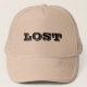 A khaki colored trucker hat that says 'LOST' on the front. You can also design your own with your own photographs, art work, words and graphics to create a unique all American trucker hat! There are a variety of different colors available for you to choose from.