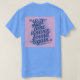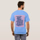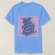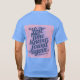 This is a Lost Time Productivity Quote by Ben Franklin t-shirt. The quote is Lost time is never found again. The quote design was artistically created with generative art. The quote is in slanted script in a blue color on a pink background. The name Ben Franklin is after the quote. The t-shirt is a mens unisex blue t-shirt. The quote is on the front and back of the t-shirt.