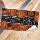 This basketball themed hand towel features varied size basketballs turned every which way on a black background - personalize with the athlete's name & jersey number plus team name & mascot name - by katz_d_zynes