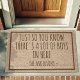 Warn guests in style with this fun, personalized coir fiber mat that reads, "Just So You Know There’s a Lot of Boys in Here." Perfect for bustling households with boys, this humorous doormat makes an ideal gift for families, pet-friendly homes, or new homeowners. Durable and welcoming, it brings personality to any entryway.