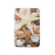 Photograph of lots of shells and starfish printed to edge of bath mat.