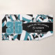 This fun towel set for a volleyball player features varied size volleyballs with teal & black team colors turned every which way on a white background and prominent jersey number in teal overlying a full length black color strip, upon which you can also personalize the athlete's name, team name & mascot name - by katz_d_zynes