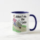 Lottery win mug. Man with wheelbarrow load of cash has just won the lottery