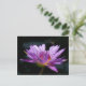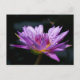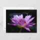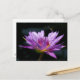A photograph of a dragonfly perched atop a lovely purple lotus waterlily adorns this pretty postcard!