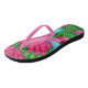 Colourful, stylized painting of pink lotus flowers by popular artist Lisa Lorenz on trendy slips flops. Standout at your next beach/pool party with these beautiful flips flops.