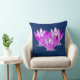 Lotus blossom pink on navy blue background throw pillow