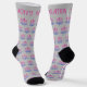 The lotus flower symbolises purity, strength and rebirth. A stylized image of the flower is here colored in blue-pink to create a simple pleasing pattern. The text around the top is fully editable, so you can put the same or different wording on each sock. The default text is "JOYFUL HAPPINESS" and "CALM RELAXATION". These socks have a soft light gray background.