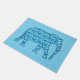 Doormat in a mixed media digital graphic of an elephant against an arabesque tiled background - turquoise, dark indigo blue and white lotus flower pattern against an aqua background
