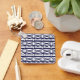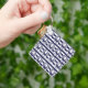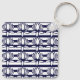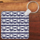 Lotus Flower Floral Stripe Pattern keychain. Navy blue white lotus flower floral stripes pattern.