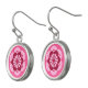 Japanese mandala design drop earrings that depicts a stylized lotus flower, symbolizing purity, spiritual awakening and faithfulness - flower in soft pink, burgundy and hot pink on a fuchsia pink background