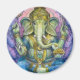 The Hindu elephant headed deity, Ganesh, sits on a pink lotus sending his blessings of good luck and abundance. Reproduced form the original mystical art painting by Sue Halstenberg.