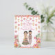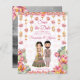 Pink lotus flowers with Moroccan lanterns and Indian bridal couple Indian wedding save the date invitation template with couples photo at the back.