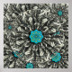 A central classic Lotus flower mandala in shades of blue and aqua, surrounded by a black and white fractal design.