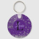 Lotus Mandala with Silver Stars on Purple Custom Keychain