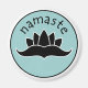 Design features lotus outline and text that reads "namaste."