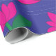Pink Lotus Flower Water Garden Wrapping Paper. Blue sky white clouds surrounded by green trees and pink lotus flowers floating in blue waters beautiful nature illustration pattern.
