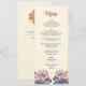 Was looking for a design to match the thence and dresses of the Bridal party, and I just so happen to stumble join Zazzle and this template. It's so BEAUTIFUL!! It was pretty easy to add my text and create what I needed. I do wish I could have moved up the bottom part but it's in a certain size box. I would have also liked the option of multiple colors for various parts of my text, but that wasn't available. Even though there were limitations, these menus came out BEAUTIFULLY! Maybe limitations are the way to go! The paper- heavy stock- is GREAT weight and quality. My shipment arrived in such a timely fashion and well packaged. This is definitely the way to go. You will love the final product. Printing was FABULOUS. IN VERY IMPRESSED