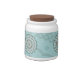 This concentric circle design features layers of white, turquoise and brown patterns inspired by Celtic weaves and Indian mehndi, such as vines, ribbons, and lotus flowers.