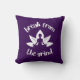A pillow featuring a white yoga lotus flower, with the phrase "Break from the Grind" centered around the image. The design suggests a peaceful escape from the daily stresses, symbolizing strength, resilience, and spiritual awakening.