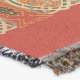 A quality printed throw has its advantages. This is a much finer weave throw than its loopier cousins, and though lighter, it is worth the investment for custom room accessorizing. The back is much prettier than the typical brown, and the fringe on the long sides very vivid, the selvage nicely done. Before photographing, I washed the throw in cold water, delicate, with a thicker woven throw the same size. On tumble dry low, this throw was dry in half the time as the other. This is a very practical quality if you use throws for furniture covers or to wrap up in frequently. The sleekness of the fabric makes it a great layer for accenting or protecting without the feeling of sitting on too much stuff. Perfect for napping or when you feel a light chill coming on. The color printing is beautiful and on this fabric, matched the design and color of my Photoshop image. This is an advantage for blending room fabrics and colors. The fringe on the short sides prints the colors from the design image and therefore varies from the side fringe. I streaked a white fractal line through the plaid pattern to give the illusion of weaving. This printed as crisp as an illusory thread, and put some white in the short side fringe, showing another advantage of print vs loomed- for artistic purposes, line lines, detail, and color integrity can be planned and preserved. My loomed throws have color limitations and more of a needlepoint texture. Print throws reproduce an exact image. The throw felt a little stiff straight out of the package, but this went away in the first delicate wash. Of course I searched the wash water for ink or bleeding and there was none.
