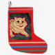 Perfect! Exactly what I ordered! I uploaded a picture of my blue chow, and the screen print was incredible. the back side of the stocking was the red and black checkered print. my puppy's name was also printed on the cuff of the stocking. PERFECT! Highly recommend this product! My puppy's name was screen printed onto the cuff of the stocking, the font was perfect!
