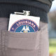 Badge of Louisiana with flag of Louisiana and flag of USA colors, rounded shape.