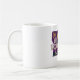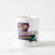 A classic coffee mug that features retro style Louisiana state silhouette in Mardi Gras colors