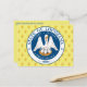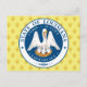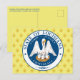 On a fleur de lis background with a full color image of the seal, this postcard is a true representation of Louisiana.
