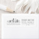This label features a stylized illustration of the city's unique skyline with its name underneath.