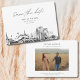 Modern Louisville black and white save the date invitation. The front showcases a stunning sketch, setting the perfect tone for your wedding day. Add your own photo to the back and customize the text to make it your own. Enter the Zazzle design tool for additional design customizations.