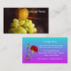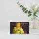 This Lounge or restaurant business card displays an enticing display of a freshly picked bunch of green grapes on a wooden table top with a apple in the back ground. The back has a simple floral design. All text can be customized to suit your individual business needs