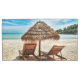 Lounge chairs on beach throw pillow case