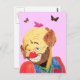 Lovable Clown Postcard. This card is decorated with a painting of a clown with a butterfly resting on his head This card would make an excellent gift for one who loves Clowns, Clowning or Circus.