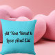 Love And Cat Personalized Cute Funny Quote Blue Throw Pillow