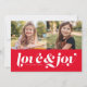 Love and joy red two photo holiday card