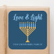 Cute custom Love and Light Hanukkah sticker for a Jewish family or a Chanukah party with a synagogue. Personalize with your own last name or group information in blue under the pretty gold menorah.