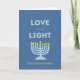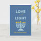 Send warm wishes for the Festival of Lights with this elegant "Love and Light" Hanukkah card. Featuring a glowing menorah design, a serene blue background, and customizable family text, this folded card is perfect for sharing heartfelt messages with loved ones. Whether you're celebrating all eight nights or sending blessings from afar, this card captures the beauty and joy of Hanukkah traditions. Ideal for gifting with presents or as a standalone gesture of love and light, it’s a meaningful way to connect during the holiday season.